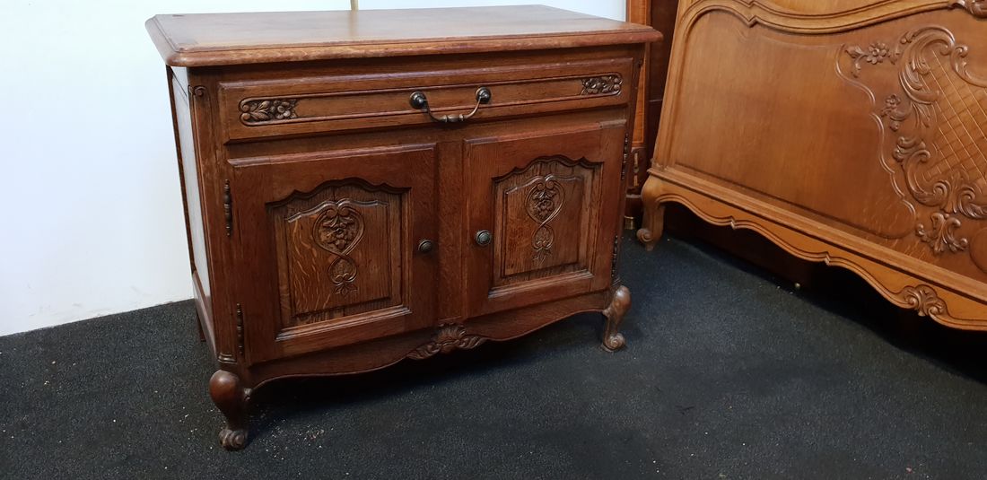 French solid oak storage cabinet, single drawer, door in Louis XVI style. c1935 $795 SALE PRICE $595