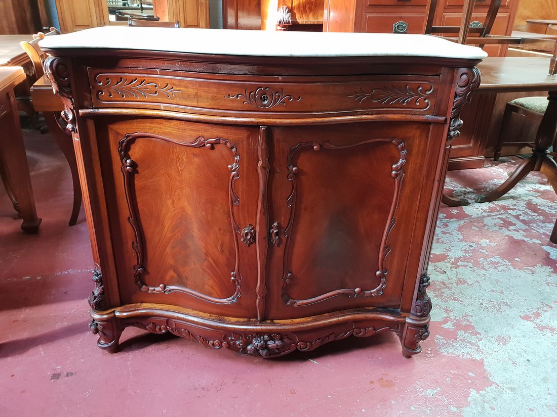 French mahogany empire cabinet with 2 drawers and single door with fitted shelves c1890-1900. $1295